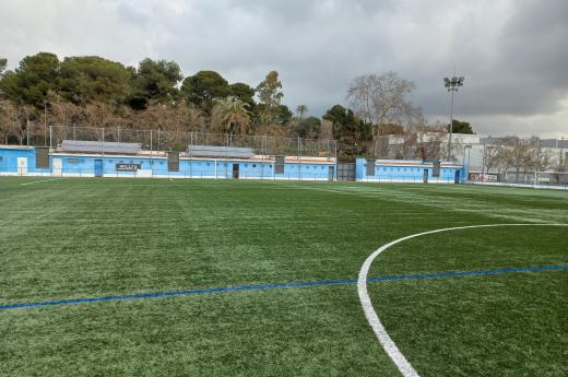 Camp de futbol de 100 x 64 metres, amb un terreny de joc per a la pràctica del futbol 11 i dos camps de futbol 7 transversals. Paviment de gespa artificial. Disposa de 5 vestidors col·lectius i 1 vestidor individual i farmaciola.